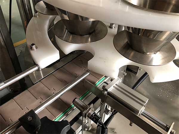 組合秤顆粒灌裝機(jī)是一種先進(jìn)的包裝設(shè)備,它將組合秤的高精度稱(chēng)重技術(shù)與灌裝功能相結(jié)合,其工作原理通常是通過(guò)多個(gè)稱(chēng)重單元同時(shí)工作,快速準(zhǔn)確地組合出接近目標(biāo)重量的物料,然后將稱(chēng)好的物料精準(zhǔn)地灌裝到容器中。顆粒罐裝機(jī)與理罐機(jī)、封罐機(jī)、搓蓋旋蓋機(jī)、貼標(biāo)機(jī)、打碼機(jī)等設(shè)備通過(guò)鏈板輸送機(jī)組合成全自動(dòng)顆粒罐裝線滿(mǎn)足企業(yè)生產(chǎn)需要。